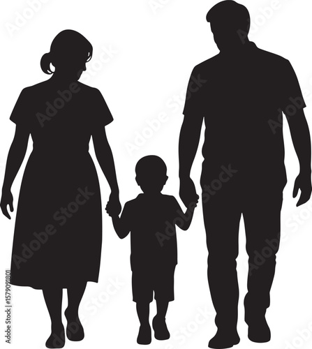 family, children, walking, holding, hand, silhouette, black, white, togetherness, oneness, casual attire, movement, people, together, bond, connection, love, human relationships, childhood, parenting, adult, male, female, boy, girl, simple, graphic, illustration, design, vector, icon, symbol, representation