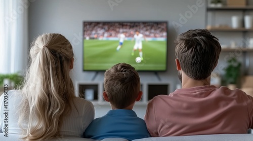 family, watching, soccer, television, caucasian, male, teenage, female, adult, living, room, sport, game, television, sofa, bonding, together, rear, view, leisure, home, entertainment, eltern, children, weekend, relaxation, pastime, jersey, play, interest, back, sharpened, indoor, activity, screen, match, togetherness, enjoyment, fun, parental, mother, father, son, cosy, lifestyle