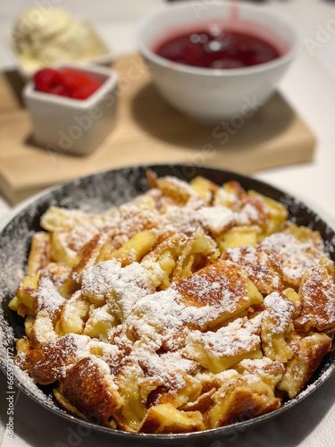 battercake, eating, delicious, dessert, white, wooden, closeup, austria, table, dish, austrian, brown, background, sweet, sugar, rustic, raspberry, food, plum, homemade, cookery, pan, nourishment, icing, meal, fruit, ice cream, traditional