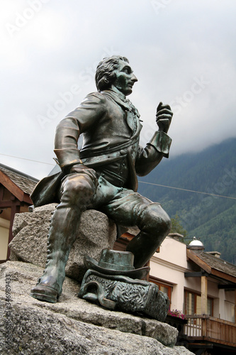 Famous mountaineer and scientist Dr Gabriel Paccard Statue in Chamonix, French Alps, France.