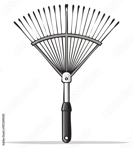 Fan Rake Tool for Yard Work and Gardening, Drawing Style