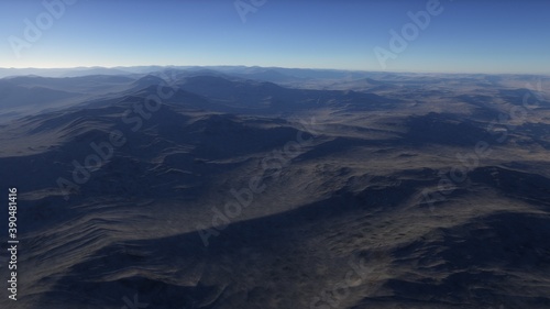 Fantastic digital surface of a distant planet, arial digital landscape, science fiction landscape 3d render