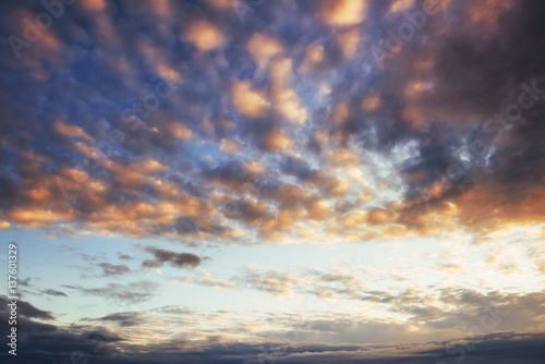 Fantastic sunset in the mountains cumulus clouds