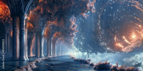 fantasy, landscape, glowing, tree, starry, night, sky, pillar, magical, enchanted, mystical, earth, universe, dimension, portal, gateway, passage, path, journey, travel, explore, discover, unknown, mysterious, intriguing, captivating, mesmerizing, stunning, breathtaking, beautiful, amazing, marvellously, marvellous, spectacular, superb, magnificent, extraordinary, incredible, unbelievable