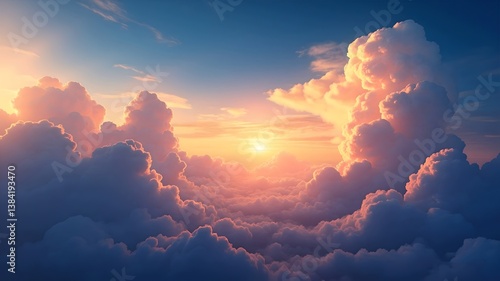 Fantasy sky with sugar cotton pink pastel clouds in a dreamy background
