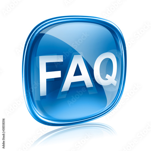 FAQ icon blue glass, isolated on white background