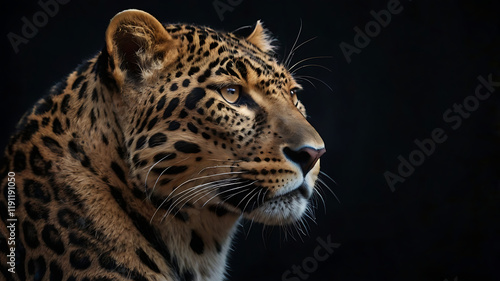 Far Eastern leopard, profile portrait. Beautiful panther leo on dark background