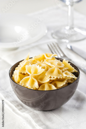 farfalle, pasta, background, italian, white, cookery, healthy, isolated, cooking, food, meal, view, top, wheat, bow, attaching, yellow, macro, ingredient, italy, macaroni, fresh, basil, closeup, wooden, vegetarian, space
