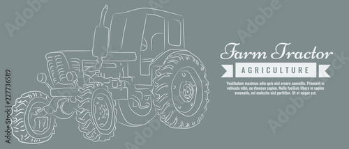 Farm tractor with sketch style line art design. Hand drawn vector illustration.