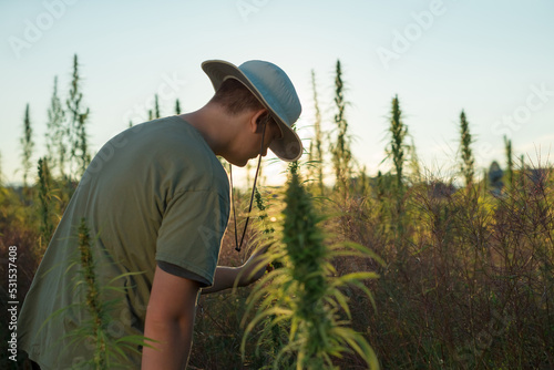 farmer, hemp, cannabis, plant, field, sunset, check, look, plantation, hat, outdoors, healthy, stalk, fresh, examining, agronomist, production, therapy, alternative, health, legal, examine, working, harvest, copy space, produce, cultivate, farm, grow, natural, leaf, growth, wild plant, agronomy, sativa, cultivation, ganja, agriculture, herb, organic, green, herbal, nature, sun, morning