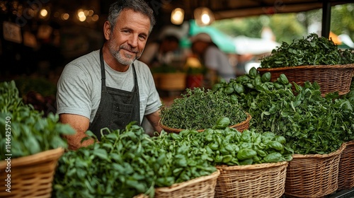 herb, farmer, market, fresh, green, leafy, vegetable, produce, basket, wicker, healthy, organic, food, gardening, agriculture, natural, wholesome, tasty, delicious, aromatic, culinary, ingredient, cooking, receipe, salad, garnish, favor, freshness, farm, countryside, stall, selling, business, entrepreneur, lifestyle, vibrant, imagery, photo