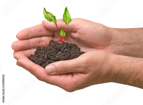 Farmer with sprout of beet in hand