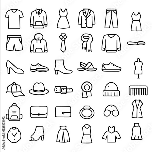 Fashion and Apparel Icons Set, 50+ Clothing, Accessories, and Style Symbols