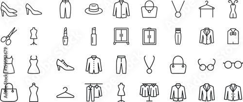 Fashion and style icon set. accessories, shoes, handbag, makeup, sunglasses, and more. Vector illustration