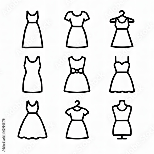 dress, icon, icon, outline, vector, clothing, apparel, fashion, clothes, symbol, graphic, set, collection, style, clothes rack, design, simple, minimalist, linear, line art, black-and-white, white background, shopping, boutique, store, retail, elegant, casual attire, formal, modern, classic, female, woman, woman, illustration, art, pictogram, silhouette, gown, uniform, garment, textile, dressmaker, tailor, hanger, mannequin, commerce, web design