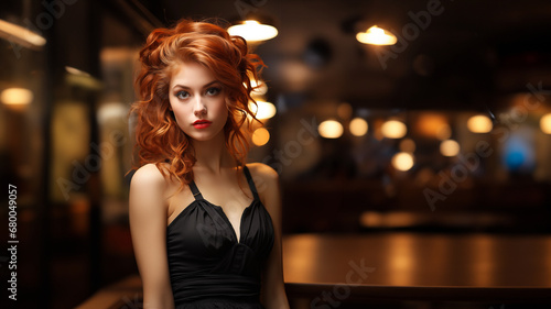 ai, model, woman, evening dress, red, hair, black, sexy, exclusively, bokeh, stylist, generous, light, evening, go out, redheaded, face, skin, look, fancy, colours, shiny, gigantic, elegance, luxury, style, posing, glamour, sensuality, beauty, dress, wedding, hair, city, eatery, dress, looking, lifestyle, eye