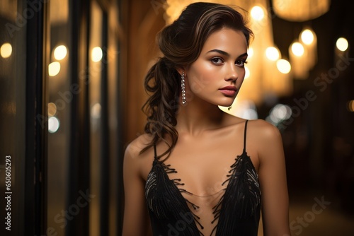 Fashion Model in a Glamorous and Sparkling Evening Gown, Generative AI