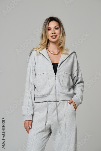 Fashion shooting in studio . Professional model , fashionable clothes and style, new collection. stylish look