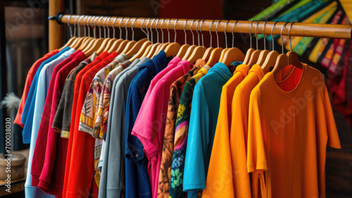 Fashion Spectrum: Array of Attire on Hangers in Different Hues