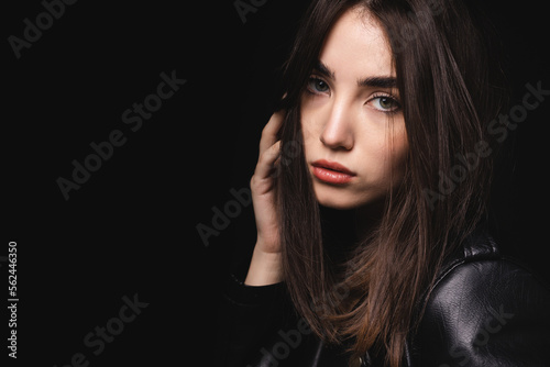 Fashionable woman with perfect skin on black background