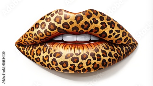Fashionable Women's Lips with Leopard Print Lipstick for T-Shirt, Poster, and Invitation Design, Vector Illustration in Stylish Aesthetic, Ideal for Fashion and Beauty Projects