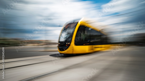 fast, driving, yellow, tram, by, city, street, motion, drive, urban, vehicle, transport, rail, public, transit, speed, modern, metropolitan, commute, journey, electric, track, travel, movement, rush, downtown, scenic, swift, blur, dynamic, light, transportation, evening, city landscape, architecture, energy, road, traffic, subway, railway, passenger, budapest