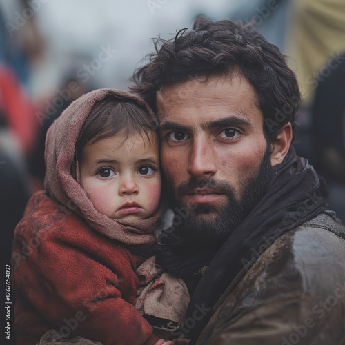 father, children, family, survival, hardship, emotion, portrait, connection, struggle, humanity, vulnerability, hope, expression, warmth, bond, outdoors, natural light, sombre, journey, culture, tradition, poverty, love, trust, care, support, nature, weathered, compassion, tone, candid, lifestyle, interaction, age, innocence, rural, community, ethnicity, grieved, joy, tender, people, character, environment, scene, face, gaze, clothing, shelter