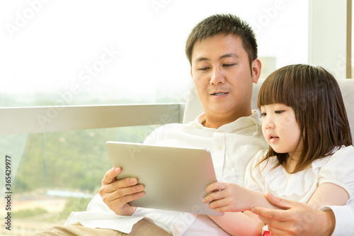 family, tablet, technology, together, love, children, father, daughter, girl, father, children, fatherhood, man, asia, china, asian, chinese, 2, people, affectionate, education, interaction, ipad, device, cyberspace, online, digital, communication, fun, happy, joy, cheerful, happiness, leisure, togetherness, cute, smiling, play, enjoying, sitting, joyful, lifestyle, home, window, indoor, day, daylight, portrait