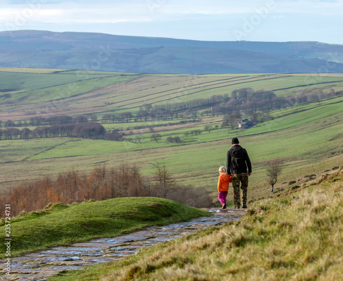 FATHER AND DAUGHTER WALKING IN THE UK COUNTRYSIDE