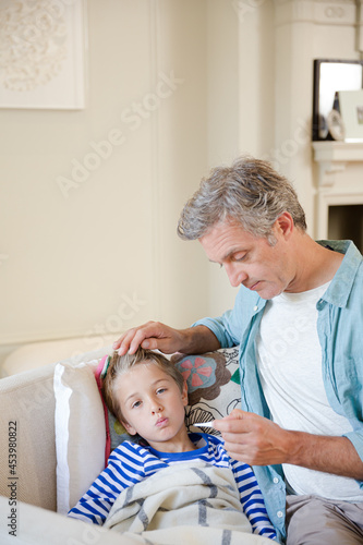 father, check, temperature, adult, bonding, boy, care, children, childhood, cold, domestic, elementary, family, fever, flu, forehead, hand, head shot, help, disease, indoor, innocence, lay, lifestyle, living room, love, man, mature, pair, eltern, people, read, responsibility, serious, to sit, son, thermometer, togetherness, 2, unhappy, view