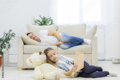 looking at, spend, young, domestic, girl, book, father, sofa, children, daughter, eltern, sitting, family, man, children, reading, father, leisure, home, cute, adult, happy, indoor, lifestyle, female, enjoying, education, together, little, comfort, casual attire, room, white, literature, cognition, gesture, quiet, human relationships, activity, cosy, day, emotion, expression, apartment, carpet, light, positive, bear, jean, greener