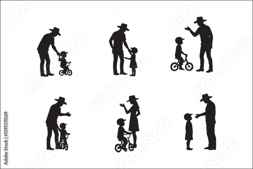 Father Teaching Baby to Ride Bicycle – Cute Family Vector Illustration Dad and Baby Learning to Ride Bike – Parenting Moment Clipart Father and Child Bicycle Ride – Wholesome Flat Vector Art Baby’s