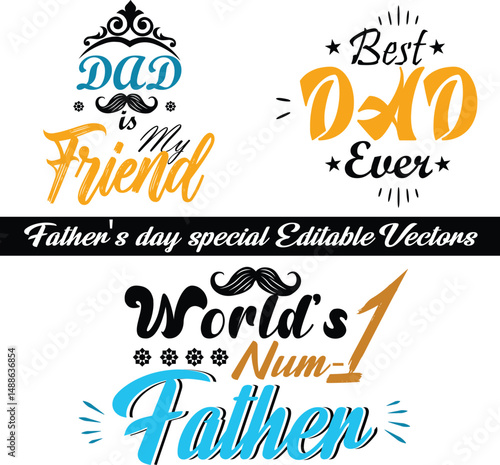 Father's Day Typography Vector Set – Best Dad Quotes and T-Shirt Designs