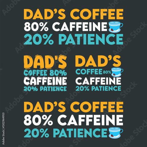 Father's Day vector Typography and Saying Dad's Coffee 80% Caffeine 20% Patience for Printing on T-shirts and More.