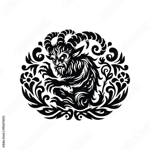 faun, satyr, fairy, leg, horn, goat, greek, mythology, fantasy, mythical, animal, creature, horror, legend, magical, monster, myth, legendary, beast, mystical, fairy tale, halloween, fear, nightmare, creepy, evil, folk, art, floral, flower, ethnic, silhouette, nordic, scandinavian, folklore, cultural, native, decoration, ornate, ornament, cut-out, black-and-white, isolated, print, emblem, contour