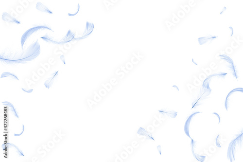 Feather isolated. Abstract bird feather texture closeup falling on white background in pattern photography. Concept of sensitivity responsiveness to nature.