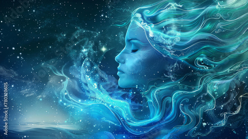 astrology, astronomy, future, horoscope, myth, mythology, signs, star, zodiac, aquarius, astrological, illustration, jug, space, symbol, water, birth, calendar, cosmos, date, fantasy, glamour, image, lady, legend, magic, model, mystery, mythical, princess, queen, spill, starry, universe, clothes, dress, goddess, night, person, virgo, art, face, female, hair, light, pitcher, portrait, woman, young