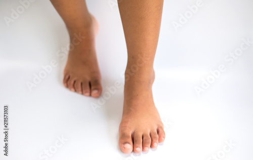 Feet Both bare feet pedal on a white background.