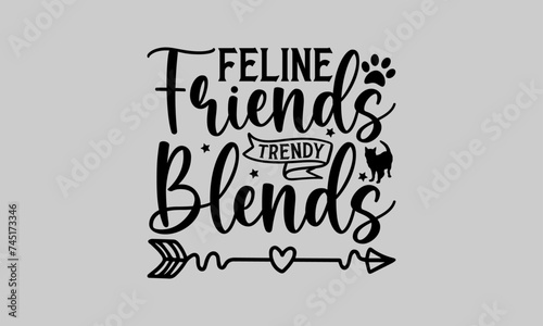 Feline Friends Trendy Blends - Cat T-Shirt Design, Kitty, This Illustration Can Be Used As A Print On T-Shirts And Bags, Stationary Or As A Poster, Template.