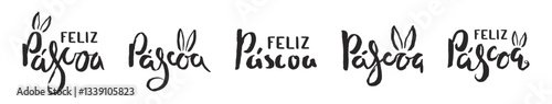 Feliz Pascoa, Happy Easter in Portuguese hand lettering quotes, calligraphy isolated elements collection. Hand drawn style line art design, vector illustration. Holiday clip art set. Seasonal card