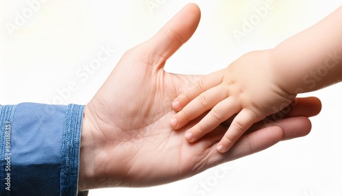 Female Adult hand Holding Small Newborn Hand - Grown Up offering Palm to Baby - Little Child holding Fingers of Father - Adoption, Parenthood, Family, Parenting, Generation, Protection, Trust, Support