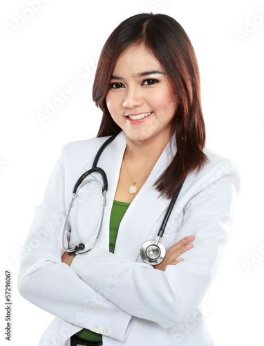 asian, beautiful, cheerful, cut-out, doctor, expertise, female, happiness, happy, isolated, medicals, occupation, people, portrait, posing, pretty, professional, professional occupation, smiling, stethoscope, studio shot, success, toothy smile, uniform, white background, woman, young adult