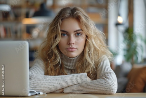 blond, woman, blue, eye, looking, laptop, computer, technology, business, work, office, cyberspace, digital, device, communication, online, professional, screen, monitor, female, person, young, modern, men at work, blond, information, datum, connection, network, wireless, web, surfing, research, study, analysis, focused, gaze, pensive, contemplative, serious, engaged, determined, attractive, spectacle, workspace, typing, computer keyboard, scrolling, portable
