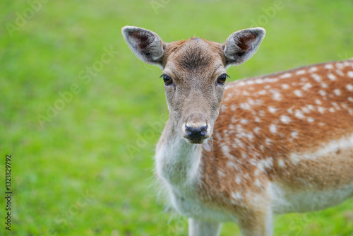 cervid, animal, wildlife, mammal, nature, wild, brown, doe, grass, ear, green, portrait, head, cute, fallow, fur, young, fawn