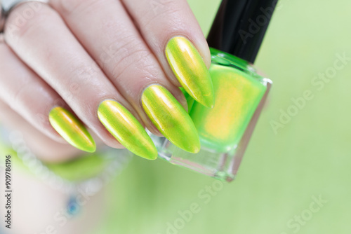 acrylic, almond, arm, body part, brightness, decoration, emerald, european, female, female hand, fingernail, gel, gesticulate, gesture, gesture, girl, hand, hand gesture, lacquer, light, manicure, marker, nail polish, neon, new year, palm, salon, sign language, skincare, stylet, toxic, varnish, white skin, woman, yellow