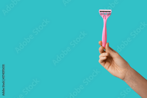 female, hand, razor, turquoise, background, beauty, blue, body, care, clean, clear, closeup, colours, copy, cosmetic, cosmetology, depilation, dermatology, epilation, girl, hair, hygiene, people, person, procedure, removal, remove, removing, salon, sensuality, service, silky, skin, smooth, soft, space, text, tool, woman
