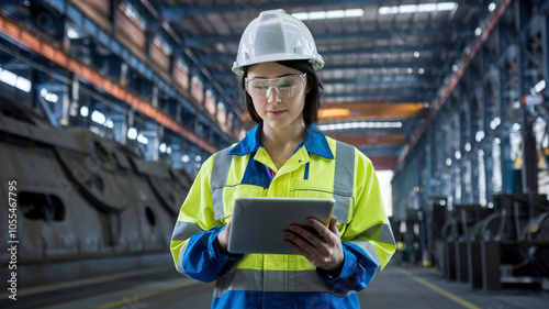 female, men at work, industrial, factory, tablet, safety, uniform, hard hat, machinery, engineering, manufacturing, construction, technology, digital, automation, production, maintenance, inspection, quality control, work, job, industry, blue-collar, manpower, innovation, operation, industrial design, process, optimization, efficiency, datum, management, logistic, tech, modern, industrial revolution, progress, growth, future