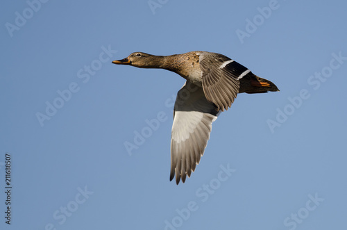 mallard duck, anas platyrhynchos, duck, female, water bird, aquatic, flying, soaring, circling, flight, bird, animal, north america, wild, wildlife, nature, blue