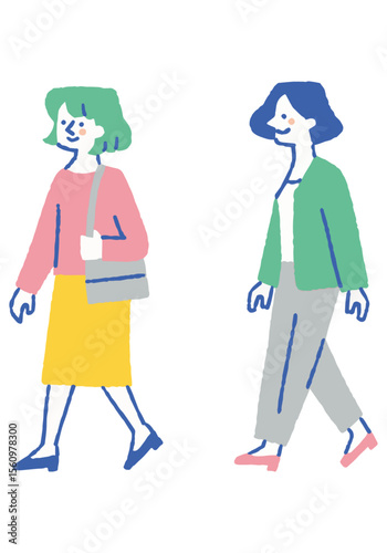 employee, walk, woman, attendance, daytime, pressed for time, work, work, suit, morning, weekday, bag, jacket, heel, person, 30s, people, fun, joyful, happy, lively, health, white background, illustration, pretty, vector, illustration, material