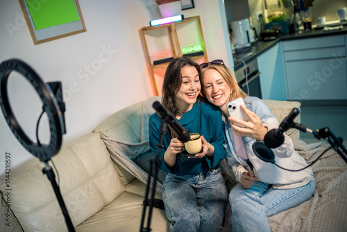 Female Podcasters Enjoy Coffee and Selfies at Home